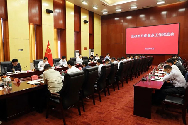 5月25日上午,县政府召开月度重点工作推进会,分析1—4月经济运行情况,安排部署冲刺二季度、决胜上半年重点工作任务。县委副书记、县长索向东主持会议并讲话,县领导辛松、李春彦、朱成、王建、石怀涛参加。