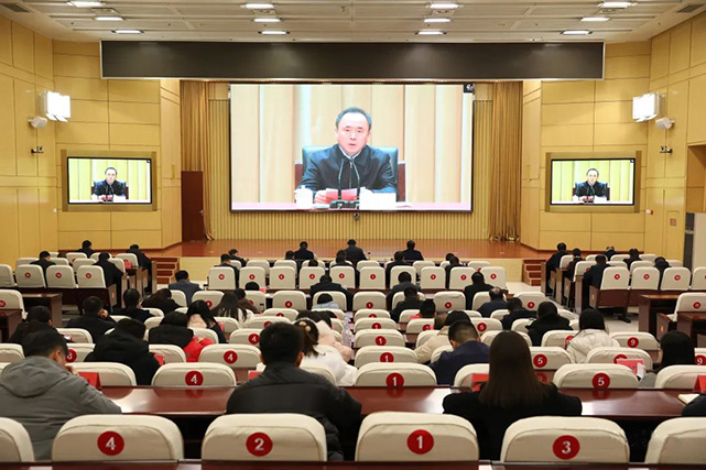 会议以视频会议形式召开。县委书记丁广州,县领导朱成、陈全更在沛县分会场收听收看。