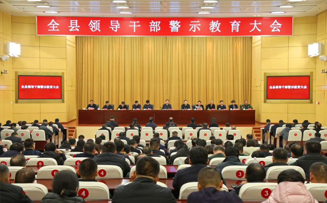 1月27日,全县领导干部警示教育大会召开,贯彻落实二十届中央纪委三次全会和全省、全市领导干部警示教育大会精神,推动全面从严治党向纵深发展,剖析身边违纪违法典型案例,教育引导全县党员干部吸取教训、自警自省、防微杜渐,增强砥砺初心使命的高度自觉,永葆为民务实清廉的政治本色,坚决打赢反腐败斗争攻坚战、持久战。县委书记丁广州出席并讲话,县委副书记、县长索向东主持,县政协主席赵士鹏、县委副书记潘晓等参加会议。