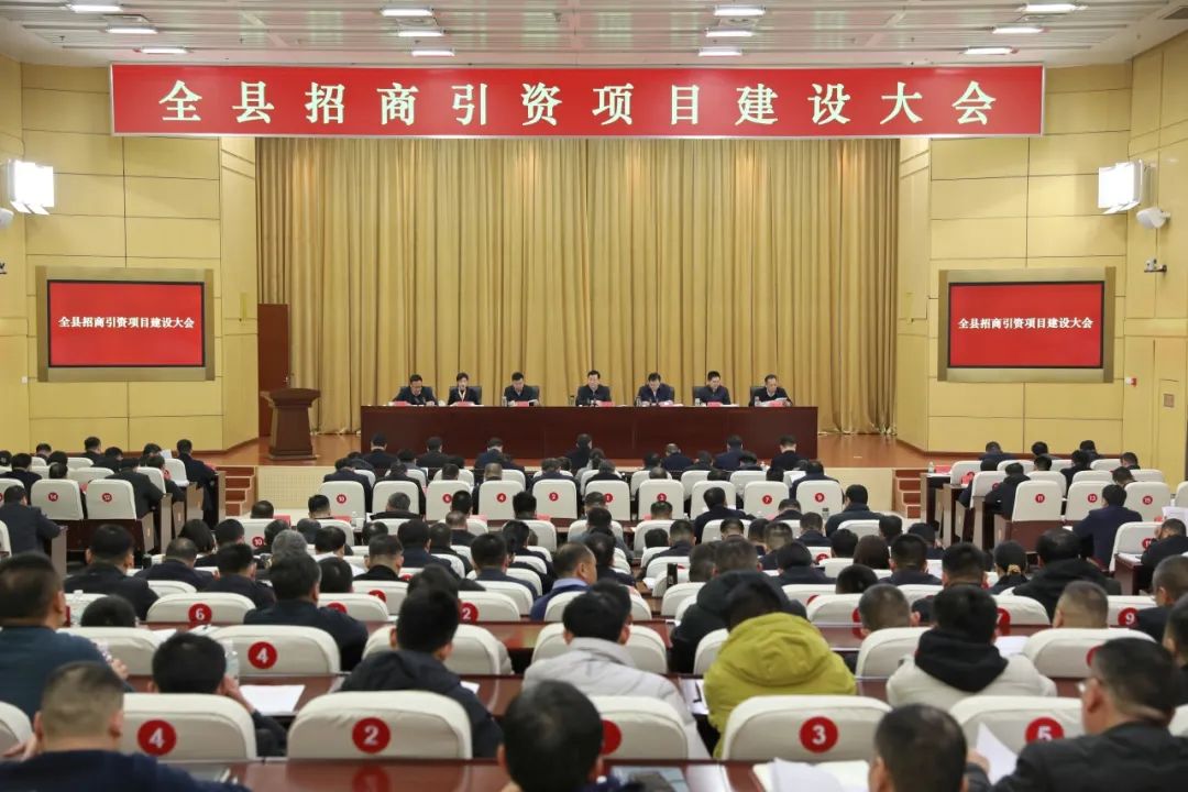 1月29日,2024年全县招商引资暨产业项目建设大会召开,回顾总结去年招商引资及项目建设情况,部署安排今年的重点工作任务,动员全县上下牢牢把握招商引资“生命线”,紧紧抓住项目建设“牛鼻子”,立即行动起来,真抓实干、聚力攻坚,全力以赴招大商、招好商,为全年工作开好局、起好步奠定坚实基础。县委书记丁广州出席并讲话,县委副书记、县长索向东主持会议,县领导辛松、朱成、陈全更、李晓青、滕坤、吴建勋参加。