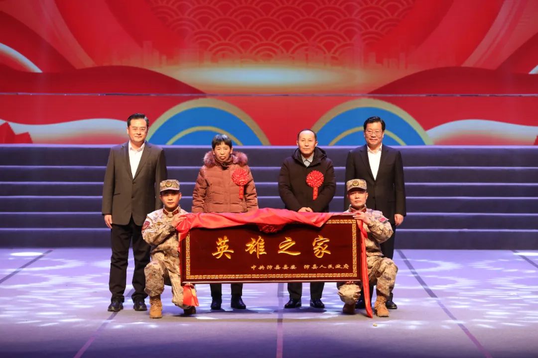 丁广州、索向东为航天员朱杨柱父母朱耿德、周瑞霞夫妇颁发“英雄之家”牌匾,郝敬彬、赵士鹏为2023年度沛县好人代表颁奖。