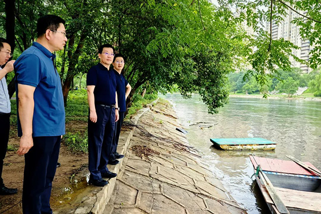 在五段镇五段河段,丁广州仔细查看河道水位,详细了解水生态环境和河道管护等情况,强调要把防汛备汛工作和河长制工作相结合,不断加强河道巡查管护、水质监测和水环境治理等工作,严格管控好岸线资源,实时掌握水文数据,准确把握雨情水情汛情,确保河道行洪安全、守牢生态底线。