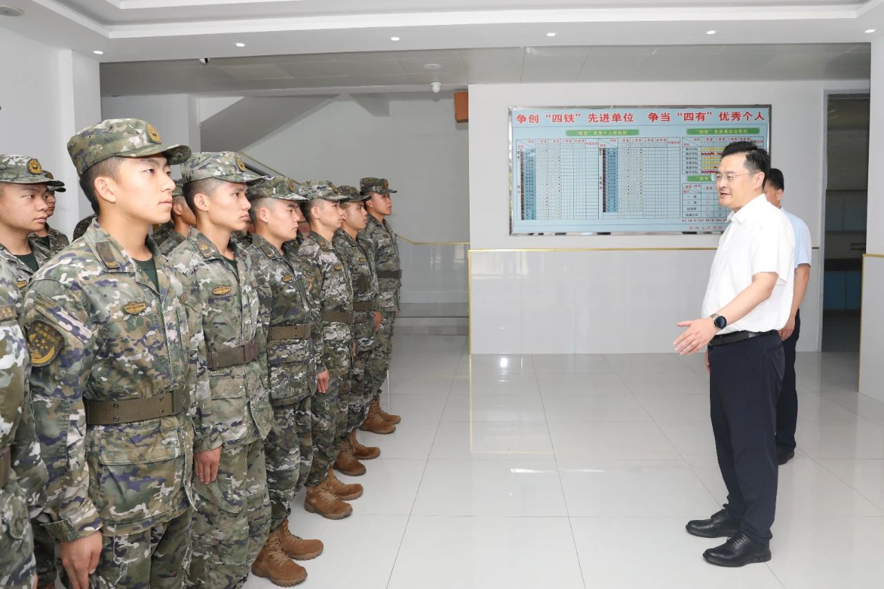 在武警沛县中队,索向东与官兵们亲切交流,了解他们军事训练、工作生活等情况,对他们长期以来在支持沛县经济社会建设、维护社会稳定、抢险应急救援等方面作出的贡献表示感谢。索向东指出,武警沛县中队坚持以习近平强军思想为引领,大力弘扬拥政爱民的优良传统,积极服务沛县经济社会发展,为保障社会稳定和百姓安居乐业作出了积极贡献。