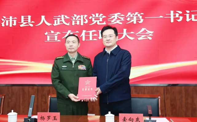 12月12日,沛县人武部党委第一书记宣布任职大会召开。市委常委、徐州军分区大校政治委员杨罗玉宣读军分区党委关于索向东同志任中共江苏省沛县人民武装部委员会委员、第一书记的决定,并颁发任职通知书。县委书记、县长、县人武部党委第一书记索向东作表态发言。