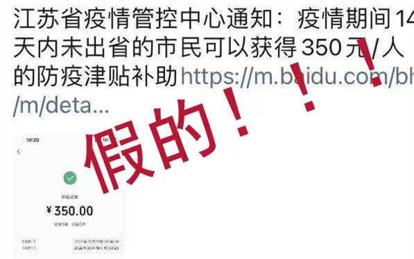 近日,江苏疾控后台收到不少消息问“疫情津贴”,对此,江苏疾控提醒:这种消息是假的,后面的链接有的是恶搞,更要担心骗子趁机诈骗,里面的链接不要点!