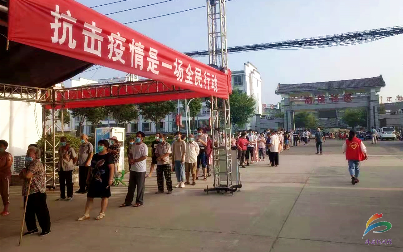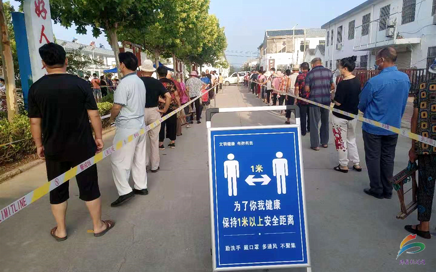 栖山镇党员志愿者王魁介绍说:“我们分了两道检测线,其中有地面引导和体温检测、身份证登记,协助医生进行核酸检测……主要是负责村民1米的安全距离线,保证今天让胡楼村小区的村民能够安全有序地完成这一次核酸检测。”
