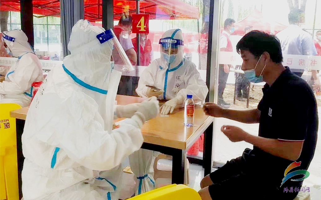 8月6日,沛城街道在好人广场对商务领域从业人员进行全员核酸检测,织密织牢疫情防控网。